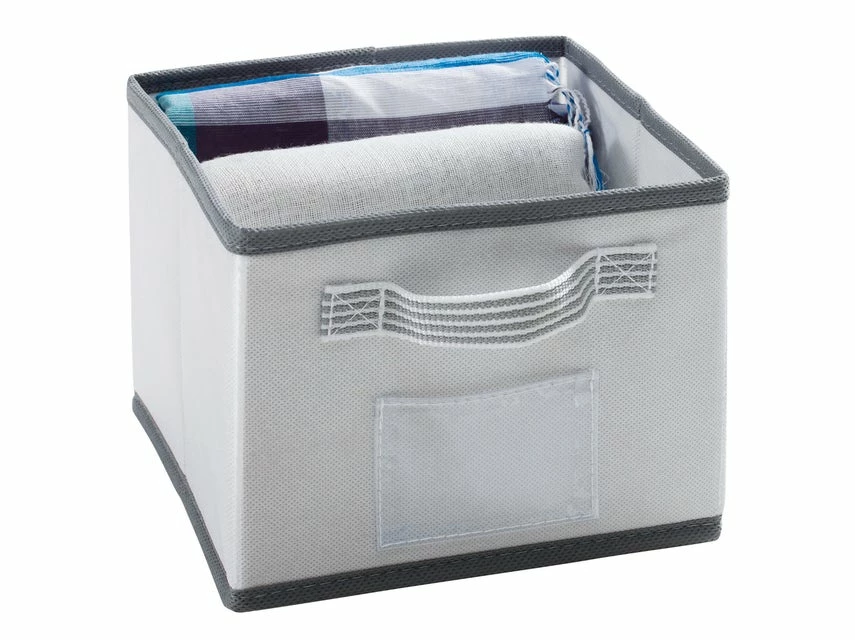Leicht zu Verstauen ist diese Aufbewahrungsbox “Bella Casa” mit handlichen Tragegriffen. Die Maße sind 18x18x15 cm und besteht aus weißem Vlies. Ohne Dekomaterial.