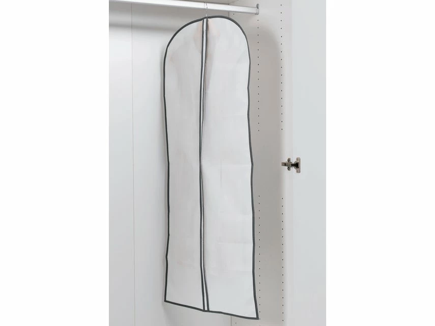 Die Kleiderschutzhülle “Bella Casa” schütz vor Wasser, Staub und Motten. Die Schutzhülle hat widerstandsfähige Reißverschlüsse und besteht aus reißfestem Vlies. Sie ist in Weiß gehalten.