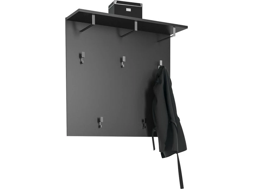 Grifflos anthrazit fünf Kleiderhaken Ablagefläche darunter Kleiderstangen Holzdekore Nachbildung kratzfest durch Melaminharz- beschichtung einfache und schnelle Montage