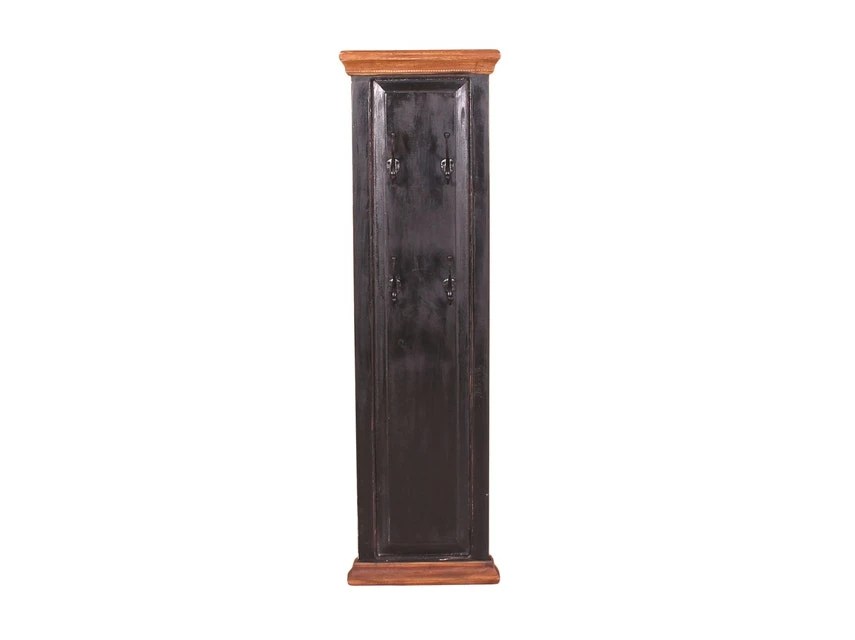Dieses 2-farbig antik gestaltete Garderobenpaneel sorgt für Ordnung in Flur und Diele oder Eingangsbereich. Die Hängegarderobe ist mit 4 stabilen Doppelhaken versehen, so dass an insgesamt 8 Haken Platz für Jacken, Mäntel, Handtaschen, Schal, Taschen ist. Das Wandpaneel ist kombinierbar mit modernen Garderobenmöbeln, passt in jede kleine Wohnung und findet in vielen Nischen einen Platz. Das fast schwarze Holz aus Mango kombiniert mit der honigfarbenen Deckplatte wirkt edel. Sie werden Ihren Gästen gerne Ihre Garderobe zeigen wollen.