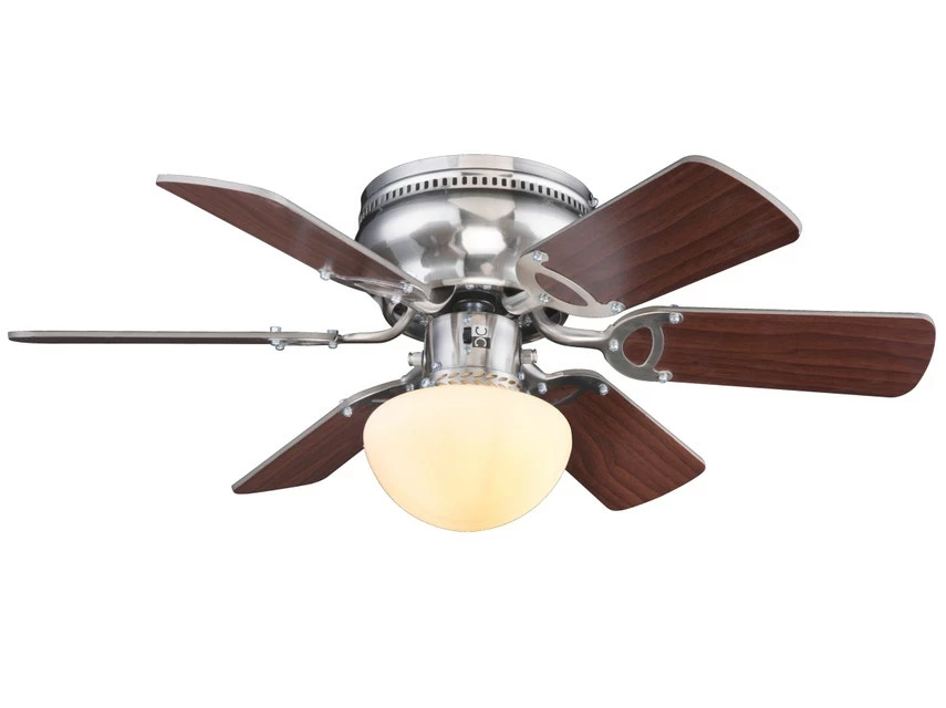 Für ausreichend Licht und frischen Wind im Zuhause sorgt Ugo – und das rund ums Jahr. Zudem präsentiert sich das schicke Kombimodell aus Deckenleuchte und Ventilator in einem dekorativen, detailreichen Look. Das matt-nickelfarbene Metallgehäuse ist mit einem opalen Glaslampenschirm und sechs wend- und wandelbaren Rotorflügeln, die auf der einen Seite grau und der anderen in dunkelbrauner Holzoptik gehalten sind, bestückt. Mit dem Zugschalter ist die Handhabung ganz einfach und es lassen sich drei Geschwindigkeitsstufen von 130 bis 249 rpm einstellen. Auf diese Weise erezugt frische, kühle Luft im Sommer und wärmere im Winter. Die praktischen Doppelfunktionen schaffen eine angenehme Beleuchtung und ein ganzjährig optimales Raumklima zum Wohlfühlen.