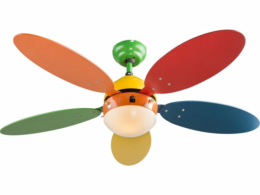 Frischen Wind, freundliches Licht und poppiges Design bringt Wade I in Ihr Zuhause, denn das schicke Modell ist Deckenleuchte und Ventilator in einem. Die formschönen, gerundeten Rotobrlätter bestehen aus robustem MDF und begeistern Kinder wie Erwachsene mit fröhlich-bunten Farben. Doch nicht nur der Look sorgt für gute Laune, sondern auch die praktische Handhabung. Mit dem Zugschalter mit Kette lassen sich drei Drehgeschwindigkeitsstufen einstellen, die Motorleistung beträgt bis 50 Watt und im opalen Glasschirm wird ein E14-Leuchtmittel nach eigener Wahl montiert. Dank Links- und Rechtslauf garantiert Wade I im Sommer kühlere, frische Luft und im Winter warme. Somit kann man sich rund ums Jahr auf individuelle Lichtverhältnisse und ein immer angenehmes Raumklima mit hohem Wohlfühlfaktor freuen.