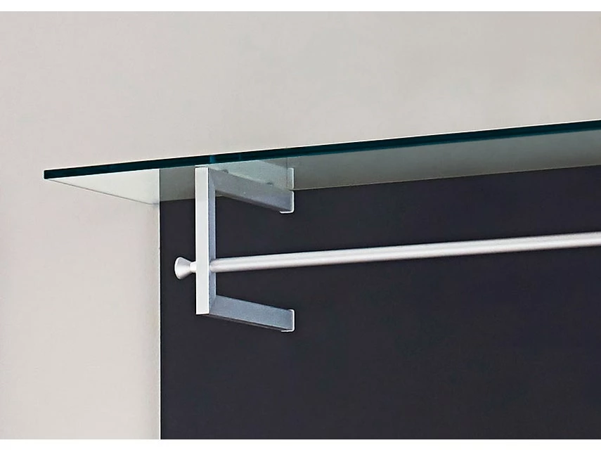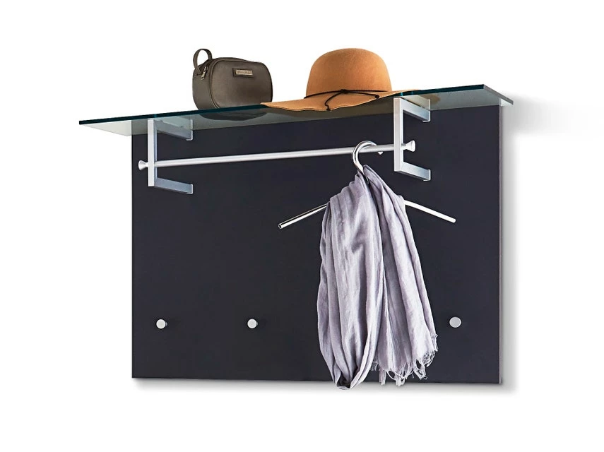 Das anthrazitfarbene Paneel bietet 4 praktische Haken und eine Hutablage aus Klarglas.