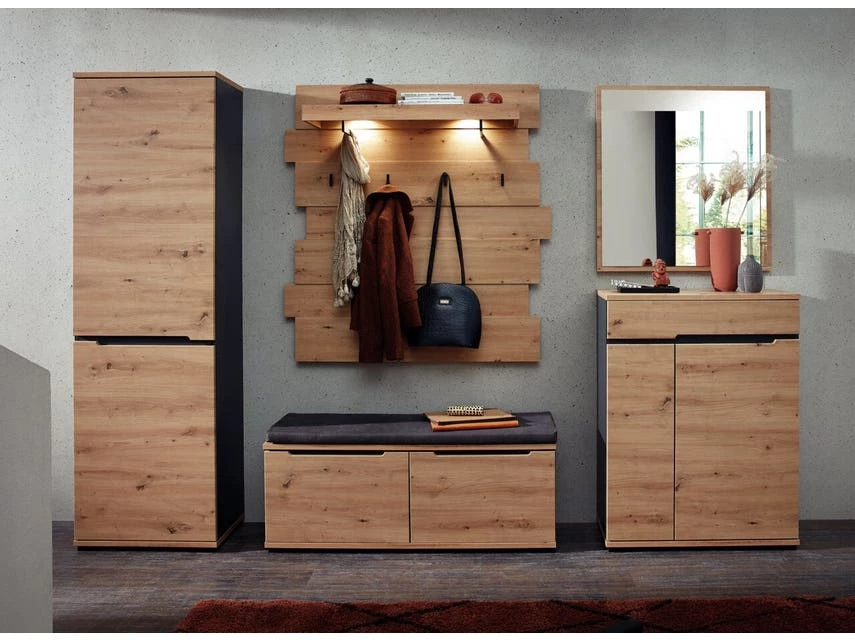 Wie sagt man so schön, Ordnung ist das halbe Leben und der Eingangsbereich die Vistienkarte einer jeden Wohnung. Das Garderobenpaneel Vito Sedeo weiß optisch zu überzeugen, passt perfekt in Ihr modernes Vorzimmer und sorgt für Ordnung. Jacken, Taschen und Co. finden hier Ihren Platz und Sie bewahren die Übersicht über Ihre Garderobe.