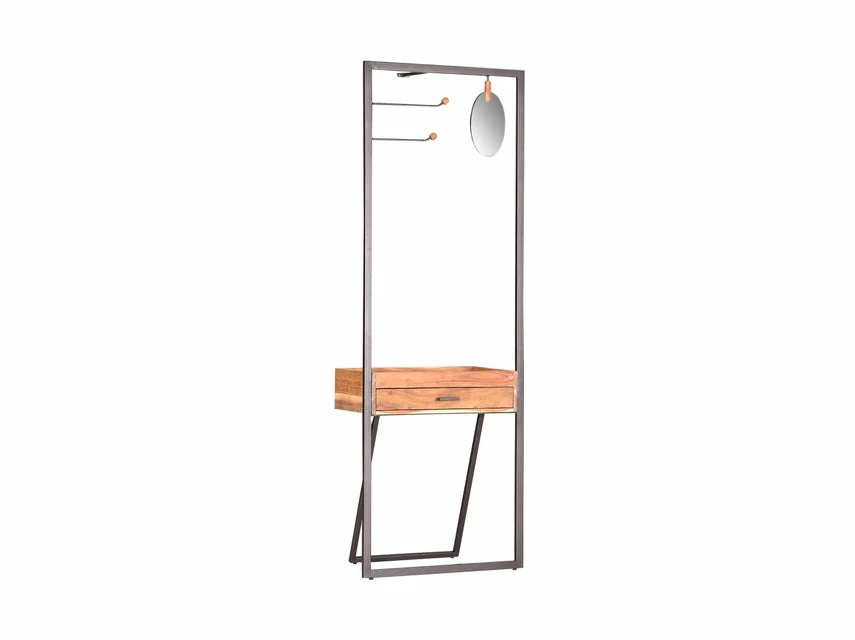 Ein Mix aus Modernität und Natürlichkeit, klare Linien sowie praktische Details machen den Garderobenständer Dresscode zu einem wertvollen Accessoire in Ihrem Eingangsbereich. Mantel und Jacken lassen sich hier knitterfrei verwahren und in der kleinen Schublade finden Tücher, Krawatten und Schals den idealen Platz. Ein Highlight ist der Spiegel in ovaler Form, welcher Ihnen einen letzten Frisuren-Check ermöglicht bevor Sie morgens die Wohnung verlassen. Ob im Vorzimmer, im Schlaf- oder Ankleidezimmer mit diesem Kleiderständer liegen Sie im Trend!