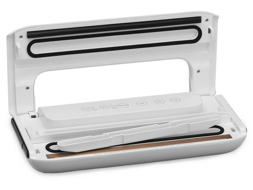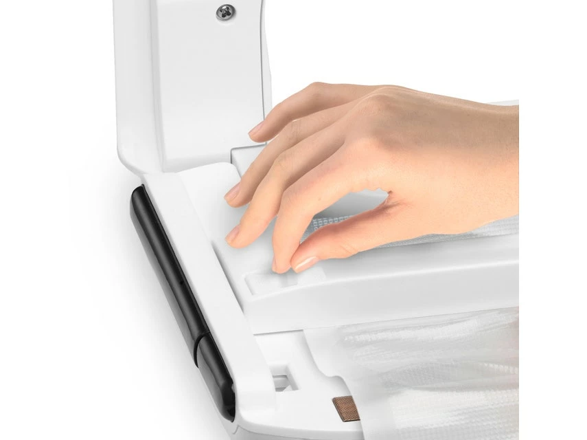 Herausnehmbare Auffangschale für ein sauberes Vakuumieren von feuchten Lebensmitteln
