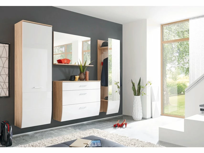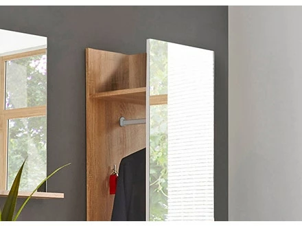 Das Wandpaneel mit Spiegelfront lässt kleine Vorzimmer größer wirken.