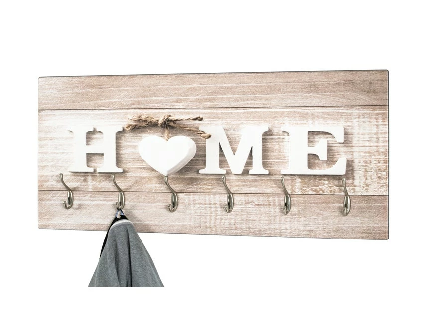 aus MDF mit UV-Direktdruck (Home), 6 Garderobenhaken aus Metall in Edelstahloptik