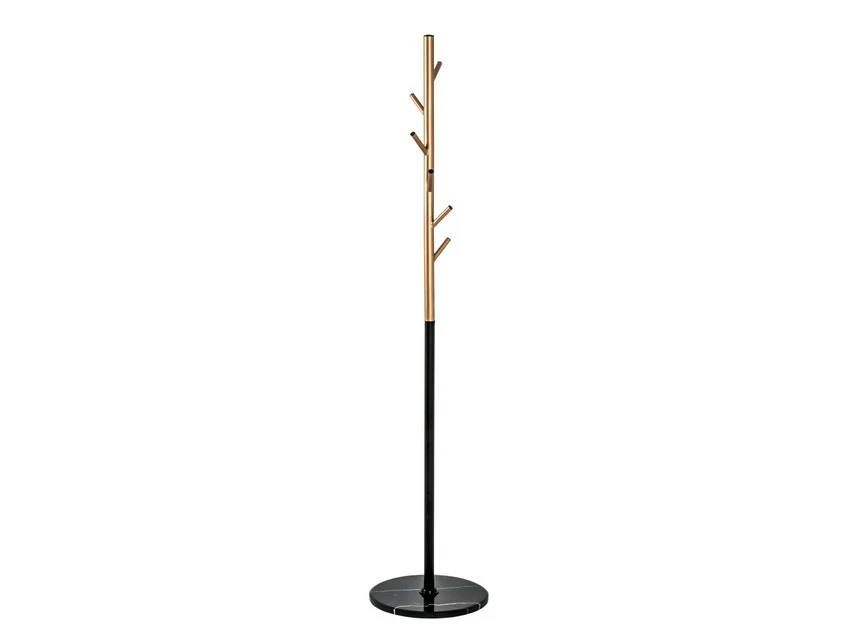 aus Metall in schwarz und goldfarben lackiert, mit 6 Garderobenhaken, Fußplatte aus schwarzem Marmor