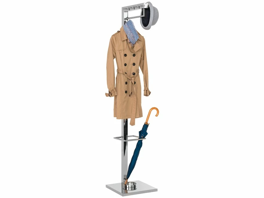 In schlichter Eleganz und mit integriertem Schirmständer ausgestattet, so präsentiert sich der Kleiderständer Gastro! Der Ständer in Stahlrohr mit Edelstahloptik bringt Ordnung in Ihr Vorzimmer.