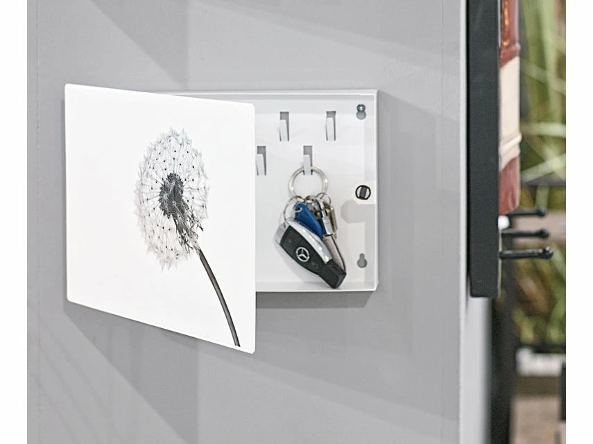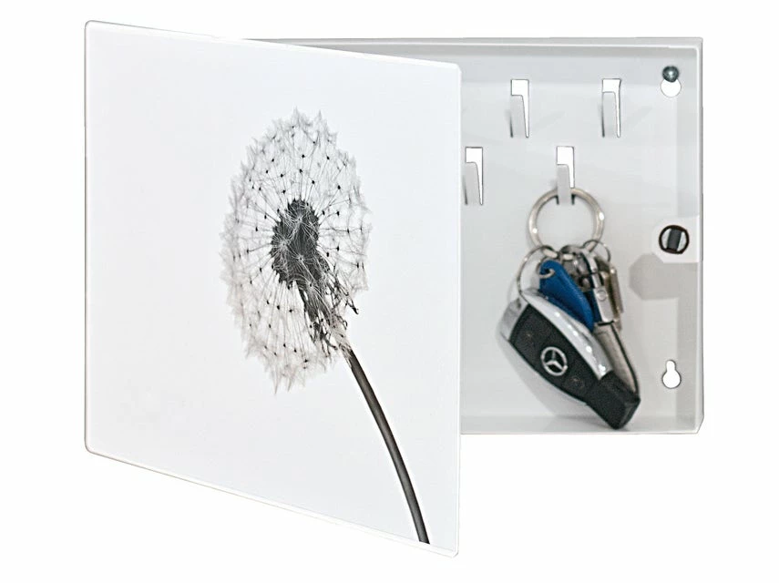 Dekorativer Schlüsselkasten mit Pusteblume-Motiv.