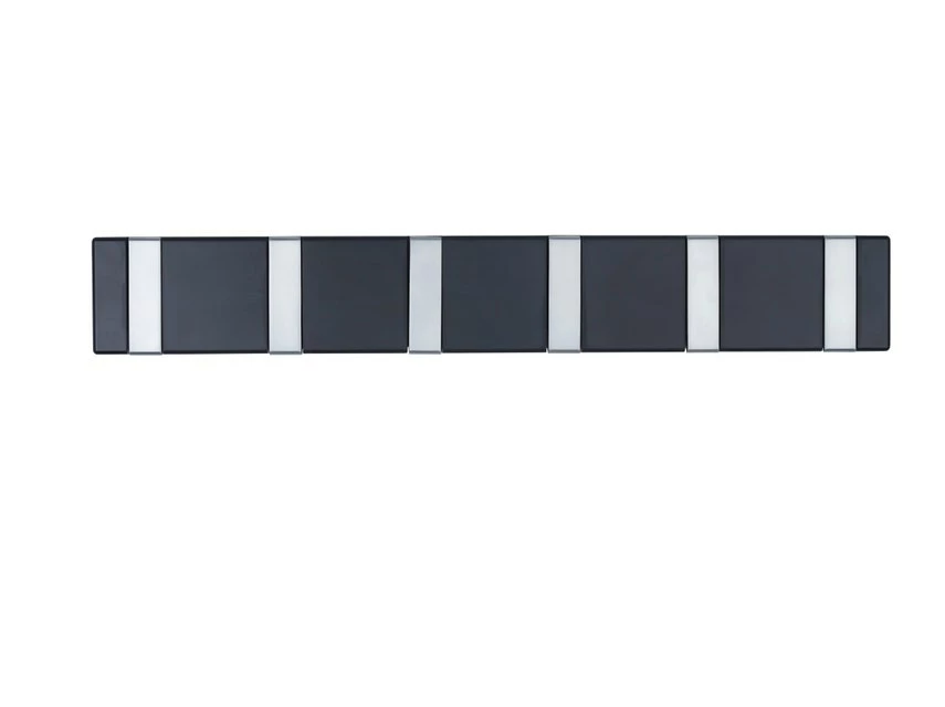 Mit der Hakenleiste Luni in klassischem Schwarz sind Sie in Ihrem Eingangsbereich und auch in vielen anderen Wohnbereichen bestens gerüstet um für Ordnung zu sorgen. Es stehen Ihnen sechs Haken für Jacken, Mäntel, Tücher, Taschen und mehr zur Verfügung. Sollten Sie einzelne Haken gerade nicht benötigen, so können Sie diese ganz einfach nach oben klappen. Diese Wandgarderobe wird Ihnen viel Freude bereiten!