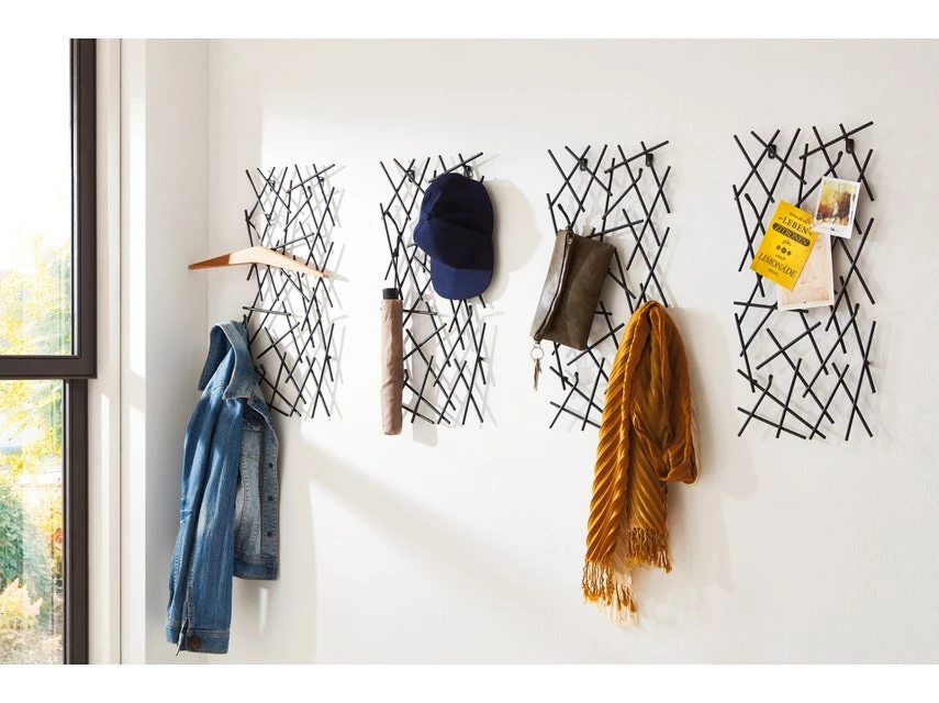 Optisch ein toller Blickfang und praktisch mit vier Haken zur Aufbewahrung Ihrer Jacken und Taschen so präsentiert sich die Wandgarderobe Mikado 2 in Ihrem modernen Eingangsbereich.
